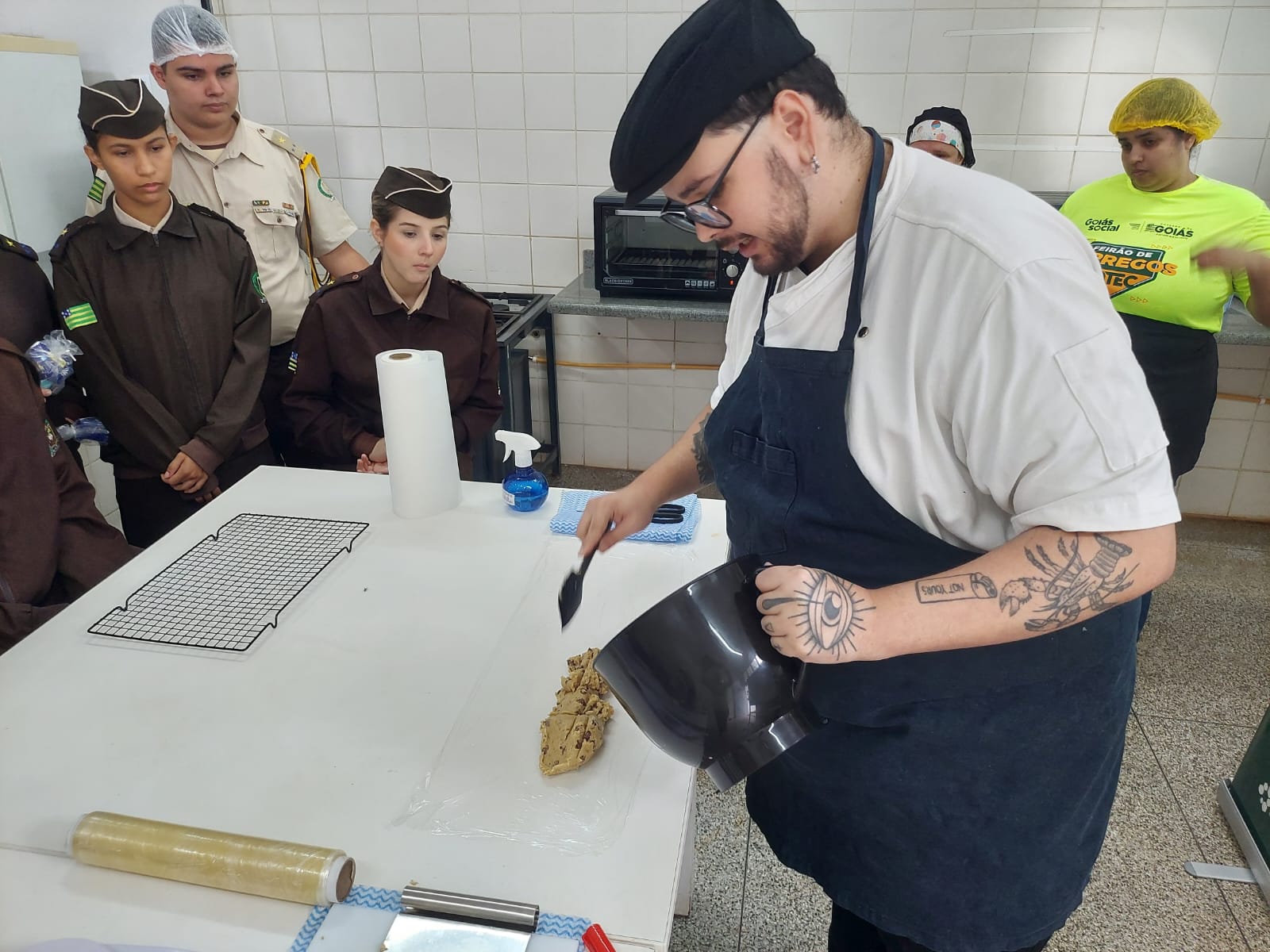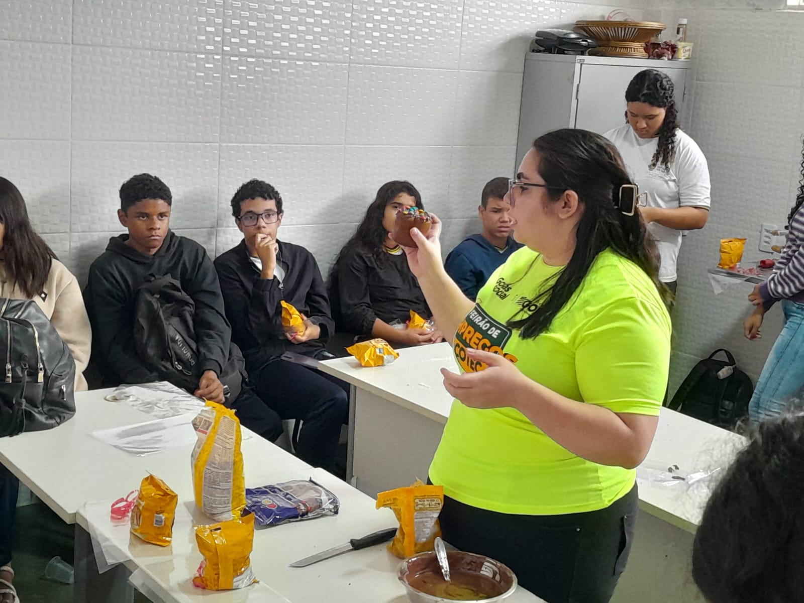 Pablo Macedo, professor de Gastronomia do Cotec Sebastião de Siqueira, ministrou a Oficina Recheio de Panetones. “As alunas estavam muito interessadas a aprender em empreender para poder ganhar dinheiro, principalmente agora no final de ano. Elas já saíram daqui e foram se inscrever no curso de panetones, que é de 80 horas, então é a garantia que a gente vai ter essa aluna aqui, que está interessada em aprender a fazer, entender como montar um negócio e realmente mudar de vida”, comemora.