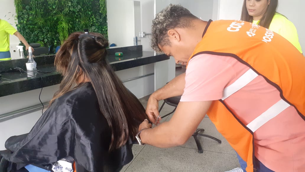 A professora Helda dos Santos Cruz Rocha, da área de Serviços de Beleza, Estética Corporal e Facial, coordenou os serviços de esmaltaria, escovação e corte de cabelo e massagem prestados pelas alunas às visitantes do Feirão. Ela, que está no Cotec há três anos, traz suas percepções sobre as alunas que procuram a instituição: “Elas vêm com vontade de fazer o curso para trabalhar. A maioria tem filhos pequenos, e fala: ‘Professora, eu quero trabalhar porque eu quero ficar perto do meu filho, montar um espaço de beleza no lugar onde eu moro’.” E o feirão serve como medida de avaliação do trabalho desenvolvido durante o curso: “As modelos estão saindo satisfeitas com o trabalho dessas alunas, isso é importante”.