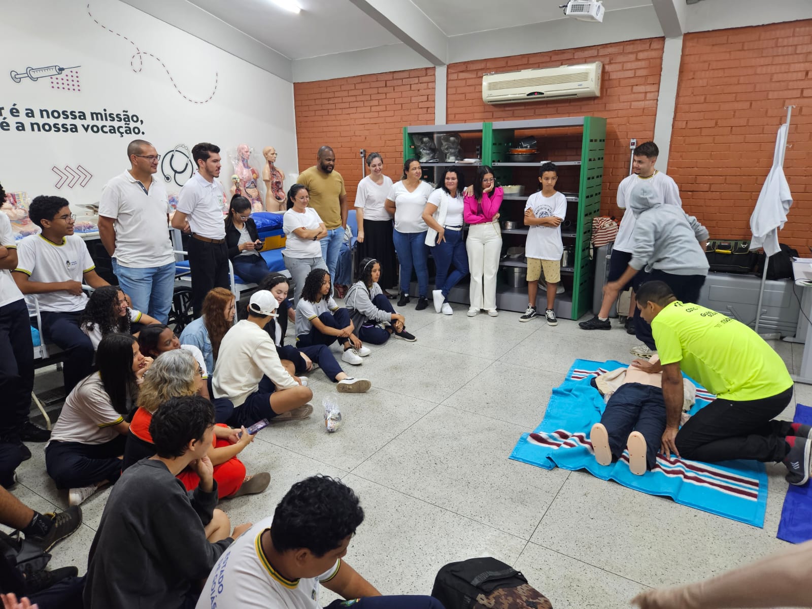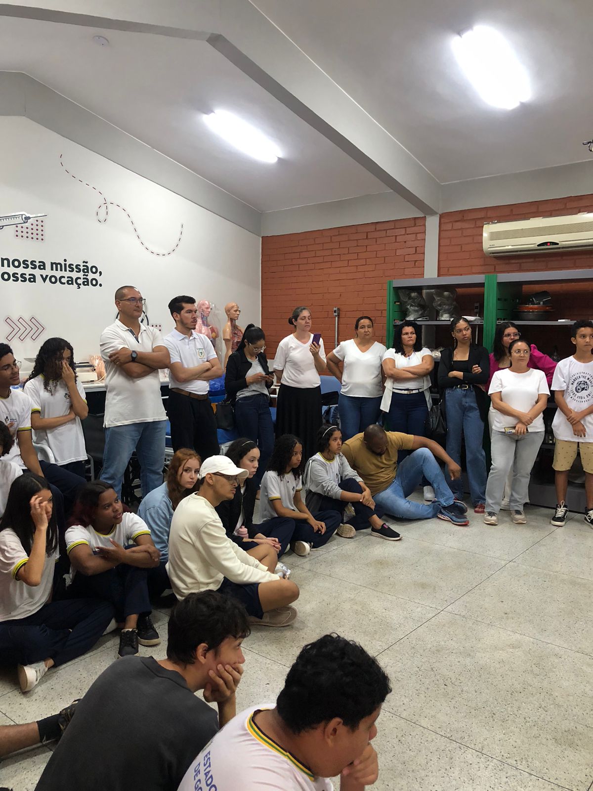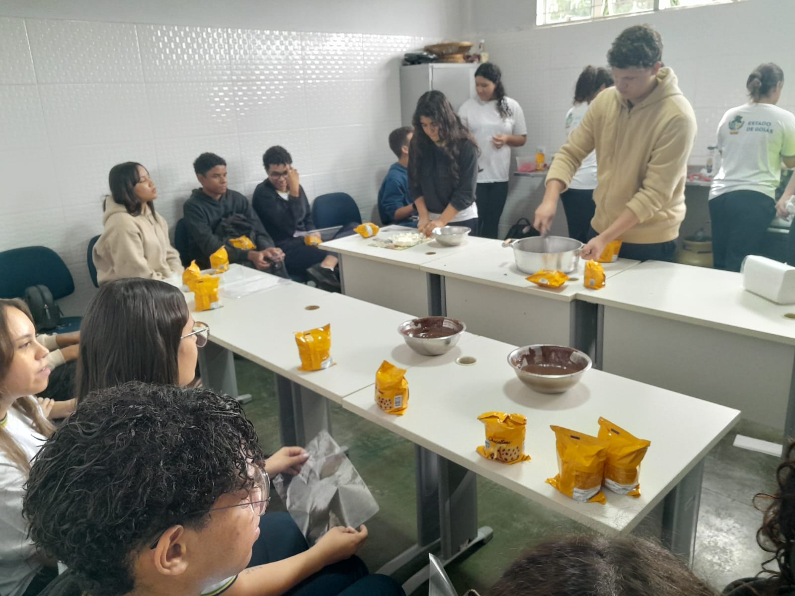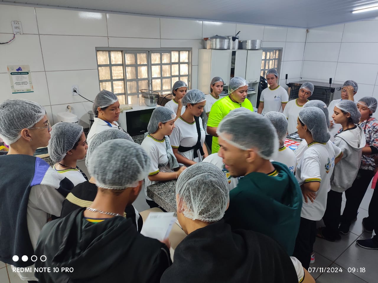 Alunos do Ensino Médio da Escola Estadual Roberto Cívita participaram de oficinas de panetone e de elaboração de currículo na unidade do Cotec no Real Conquista, supervisionados pela coordenadora pedagógica do Colégio, Ana Maria Figueiredo Santos. “Os alunos estão iniciando o ensino médio, então, esses aprendizados são muito importantes para eles se desenvolverem. Tem alguns que querem começar a empreender, e culinária é uma boa opção. O currículo também é muito importante. A maioria deles tinha dúvidas de como fazer, e esse foi o momento de esclarecer todas essas dúvidas.”